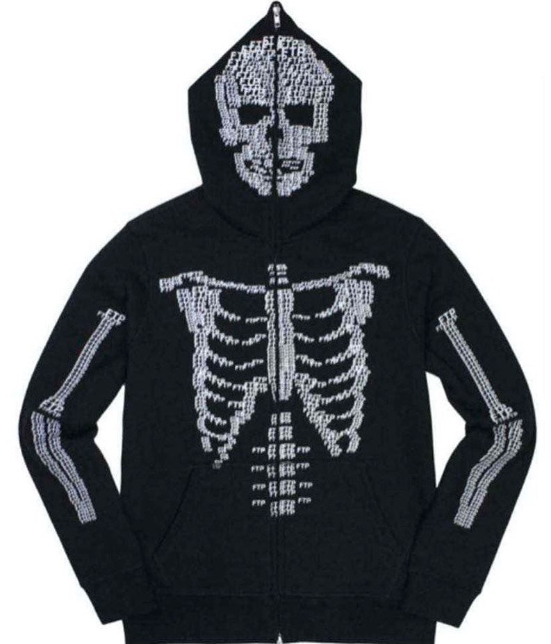 Full Zip SKELETON RHINESTONE HOODIE