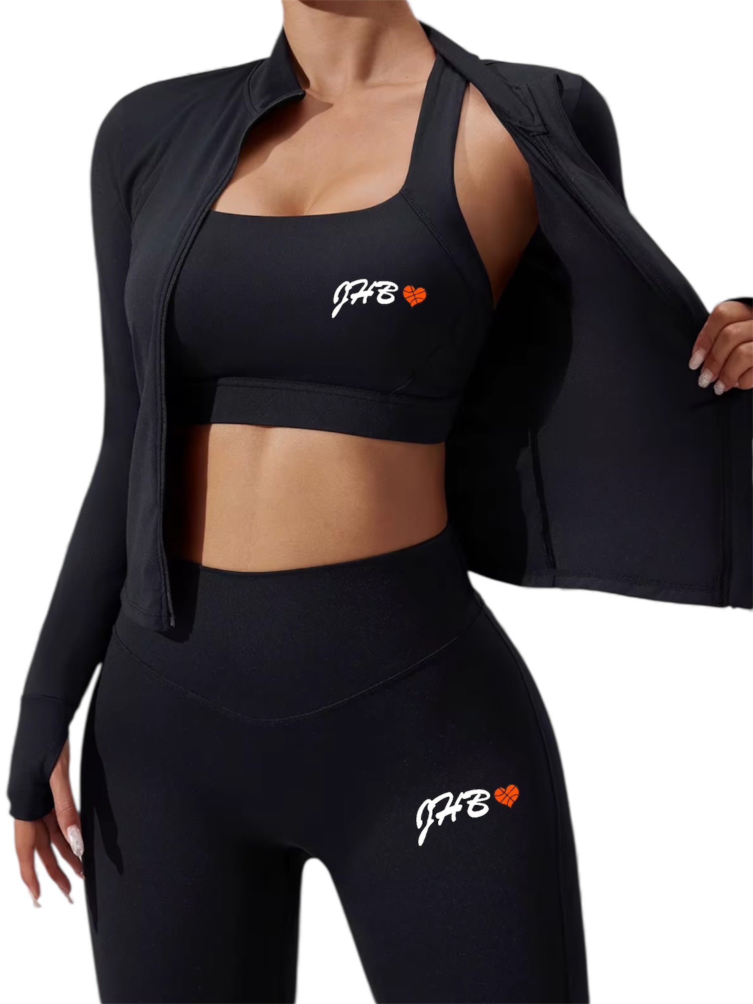 Style that perfoms, this three-piece set blends comfort, support, and style for every workout and beyond. The lightweight cardigan delivers breathable coverage with a smooth, flexible feel—perfect for warm-ups, cool-downs, or on-the-go layering.